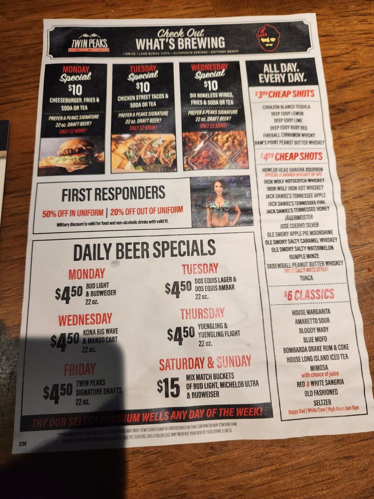 Welcome to Twin Peaks - State Rd 436, a vibrant sports bar nestled in Altamonte Springs, Florida. This venue merges the excitement of game day with a diverse New American menu, perfect for both casual diners and enthusiastic sports fans.